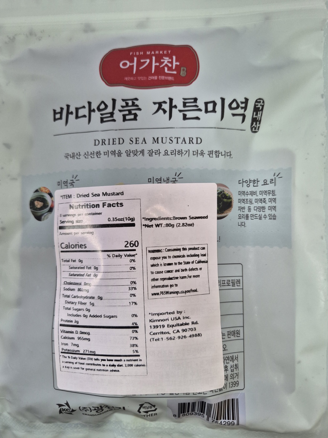 Dried Seaweed Sea Mustard is packed with good stuff: vitamins, minerals, and fiber. It acts like food while supporting digestion, and is good for weight control. Kwancheonkim dried seaweed sea mustard is from a beautiful island, called Wando, where the entire waters are formed by volcanic rock, and the waters are clean, resulting in exceptionally flavorful and nutritious seaweed.