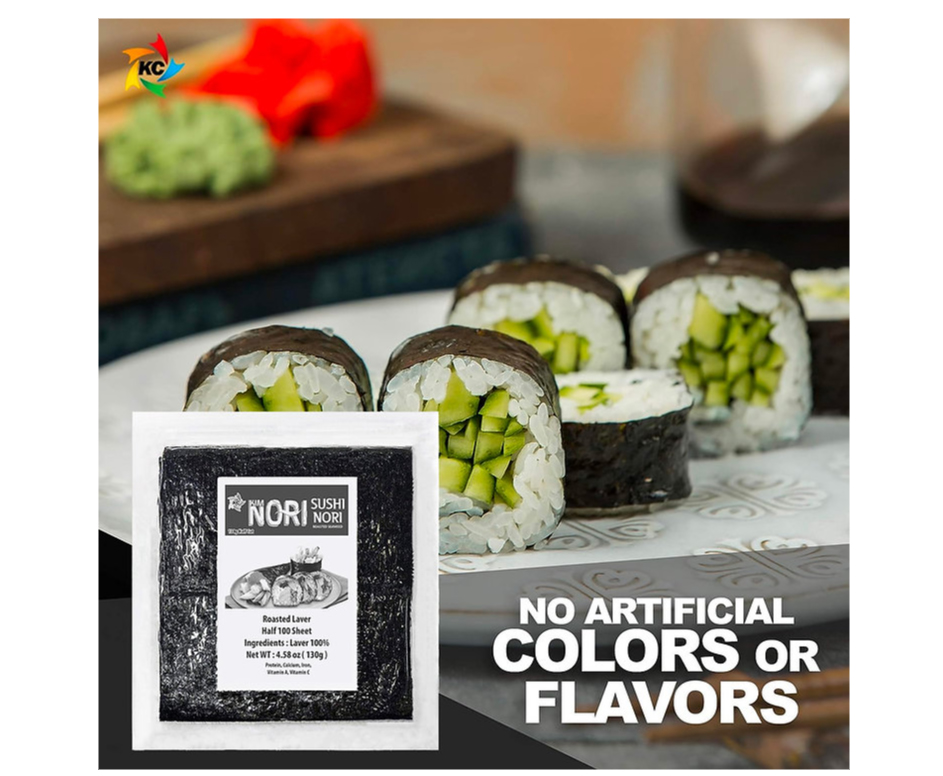 - Sushi Nori, available in full-size and half-cut sheets, is freshly roasted organic seaweed laver.